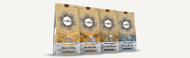 Craftia Natura is grain-inclusive pet food with an enviable amount of freshly prepared raw animal protein, alongside more traditional high quality animal proteins, all combined with superfoods that help promote a puppy’s and adult dog’s health and well-being.